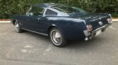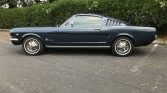 Work has included metal repairs and refurbishment of the interior and exterior, as well as an engine overhaul. The car is refinished in Caspian Blue over blue upholstery and powered by a modified 289ci V8 retrofitted with a four-barrel carburetor and mated to a three-speed automatic transmission. Additional equipment includes 14? steel wheels, a replacement differential with a 3.00:1 axle ratio, and an AM radio.