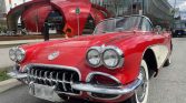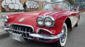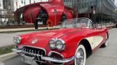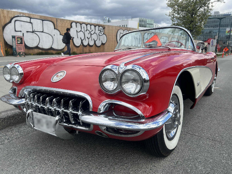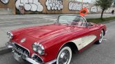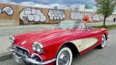 Equipment includes a four-speed manual transmission, a limited-slip rear differential, a black soft top, steel wheels with covers, a Delco/GM radio, a Hurst shifter, and power windows. Service in 2019 is said to have included rebuilding the front end, setting the timing, and changing the oil.