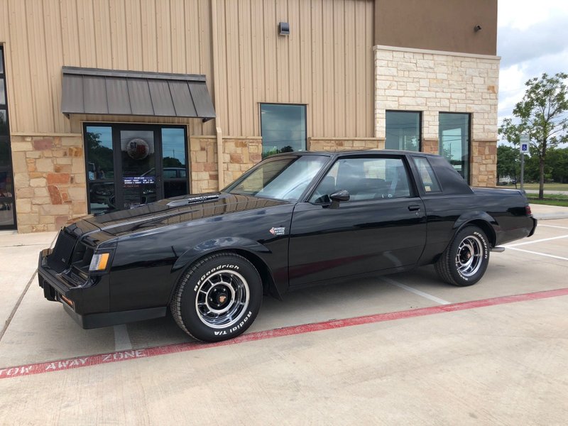 1987 Buick Grand National Coupe 3.8 Liter V-6 Turbocharged Engine Automatic Overdrive Transmission Mirror Black Exterior over Black and Gray Interior Power Seats with Full Factory Console Air Conditioning Factory Delco AM/FM/Cassette Stereo with Concert Sound Speaker Package Cruse Control Power Disc Brakes Power Windows Power Locks Power Antenna Electric Trunk Release