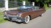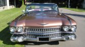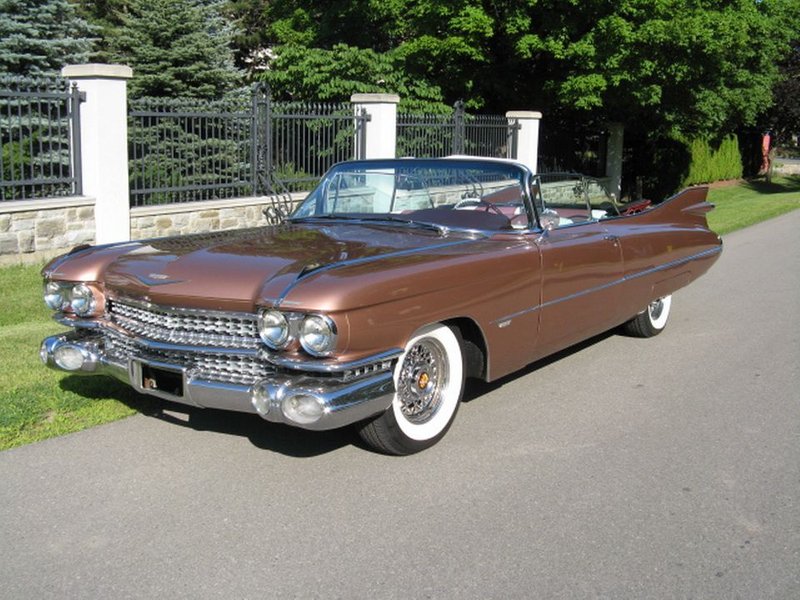 1959 Cadillac Series 62 Convertible 390 V-8 Engine Automatic Transmission Desert Sand Exterior over Desert Sand and White Leather Interior New Dark Desert Sand Convertible Soft Top Air Conditioning Power Steering Power Disc Brakes Power Seats Power Windows Originally a Recent Restoration Convertible Conversion Extras include Genuine Wire Wheels Wide White Wall Tires and Parade Boot Ready to go Cruising – An American Icon
