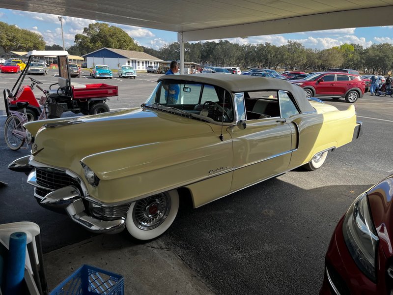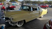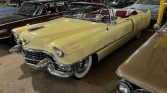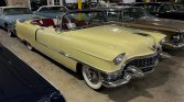 1955 Cadillac Series 62 Convertible 331 V-8 Engine Automatic Transmission Yellow Exterior over Red and White Leather Interior White Convertible Soft Top Very Original Power Steering Power Windows Continental Kit Ordered when New Sabre Wheels Ordered when New Period Photos of Original Owner with Car An Outstanding Example