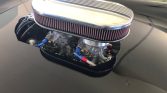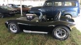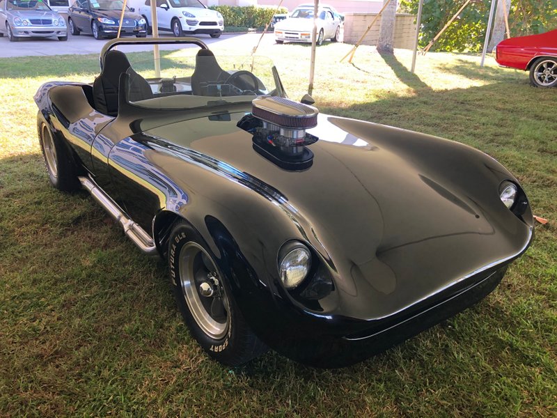 1964 Cheetah Custom Roadster Replica 400 Small Block V-8 Powered with Dual Quad Carbs 6-Speed Tremec Manual Transmission Deep Black Exterior over Black Bucket Seats Built by Shell Valley Cheetah Customs 4-Wheel Disc Brakes Rectangular Tube Chassis with 9″ Ford Rear Differential 4-Link Rear Suspension Front Tubular A-Arms Side Exhaust Torque Thrust Wheels with Raised White Letter Tires Coil Overs with Adjustable Four-Link Rear End