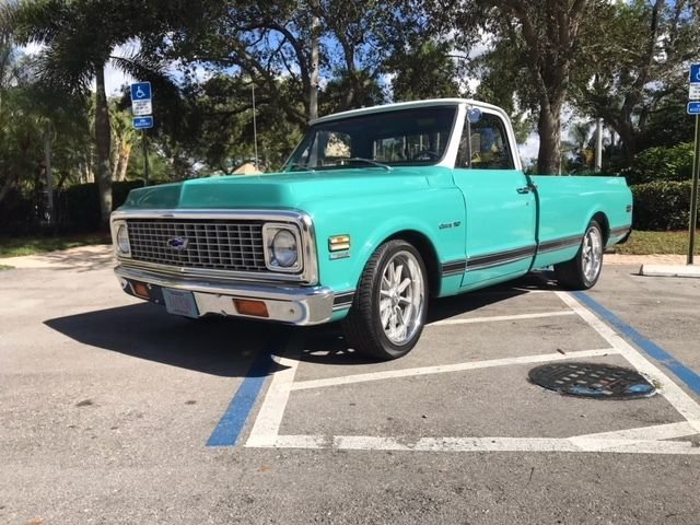1972 Chevrolet C10 Custom Pickup Pro Built 355 SBC W/Promax Aluminum Heads V-8 Engine Automatic Transmission Green and White Exterior over Green Interior Mild Cam Edelbrook 650 Carb and Headers Custom Wheels