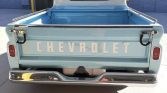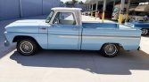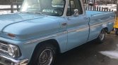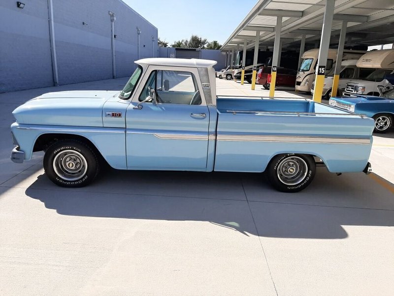 1965 Chevrolet C10 Custom Pickup LS6 V-8 Engine 376 / 400 HP 4-Speed Automatic Transmission 4L60E Light Blue Exterior over Blue and White Interior Aftermarket Air Conditioning FAB Aluminum Heads FiTech Fuel Injection System Chrome Air Conditioning Compressor and Amp LED Headlights and Tail Lights Rebuilt Dashboard with New Cobalt Instrument Display Retro Sound Radio Disc Brakes Custom Build Completed in September 2017