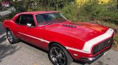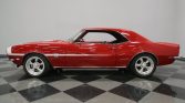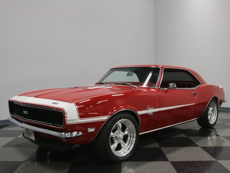 1968 Chevrolet Camaro RS/SS Coupe 396 V-8 Engine Muncie 4-Speed Manual Transmission Matador Red Exterior over Red Interior Deluxe Interior with Bucket Seats and Center Console Originally a Factory Matador Red Car White Stinger SS Stripe Vintage Air Conditioning Power Steering Power Front Disc Brakes Blacked out RS Front Grill SS Hood with Velocity Stacks Chrome Bumpers are New so they Shine like Mirrors Detailed Engine Compartment Custom Chrome Wheels