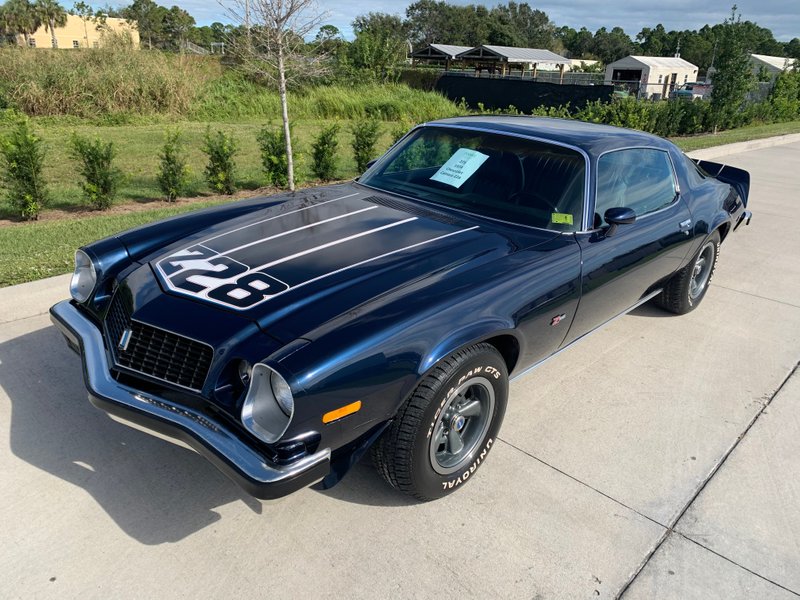 1974 Chevrolet Camaro Z28 Coupe Numbers Matching 350 V-8 Engine Automatic Transmission Dark Blue Exterior over Black Interior One Owner from New Factory Air Conditioning Smog System Original Dealer Invoice Order Sheet Copy of MSO Registration Receipts for the Last 45 Years