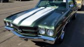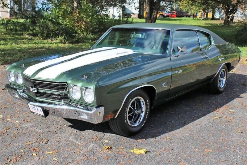 1970 Chevrolet Chevelle SS 396 Coupe Big Block 396 CI V-8 Engine Muncie 4-Speed Manual Transmission Factory Ordered Triple Forest Green Metallic with White Hood Stripes over Matching Interior Forest Green Metallic Vinyl Top Numbers Matching Bucket Seats Full Console Performance Suspension with Posi-Traction Vac Power Brakes Working Cowl Induction Raised White Letter Tires Detailed Undercarriage Factory Build Sheet from Kansas City, MO Plant True, Real Deal Born SS
