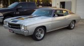 1971 Chevrolet Chevelle Malibu Coupe BONDED TITLE 350 V-8 Engine 4Bbl Carbs 350 Turbo Automatic Transmission . Chevelle SS Clone SS Badging and Cowl Induction Hood Power Steering Power Disc Brakes Factory A/C car but missing Compressor and Brackets Texas Car and very Solid All Original Sheet Metal Brand New Wheels and Tires Runs and Drives Great Drive it across the Country