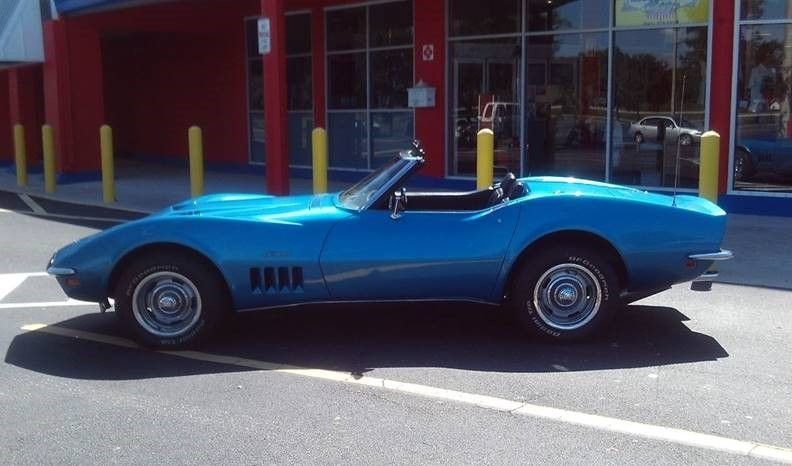 1969 Chevrolet Corvette Convertible Matching Numbers V-8 427cu in 390hp Engine 4 Speed Manual Transmission Lemans Blue with Black Vinyl Interior & Black Convertible Soft Top Both Hard & Soft Tops Power Steering Power Brakes New Stainless Calipers just a month ago Deluxe Bucket Seats with Headrests Complete Smog Pump Ignition Shield Tilt and Telescopic Steering Wheel Gauges Rally Wheels