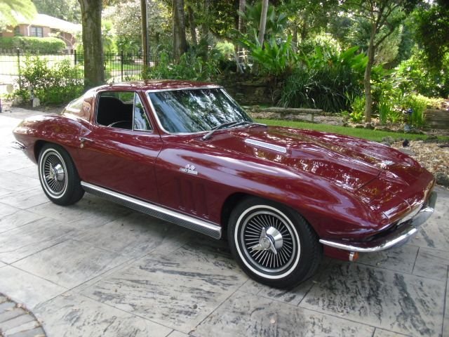 1966 Chevrolet Corvette 454 Coupe 454 V-8 Engine 4-Speed Manual Transmission Milano Maroon Exterior over Black Interior Original Colors Inside and Out AM/FM Factory Radio Knock-Off Wheels