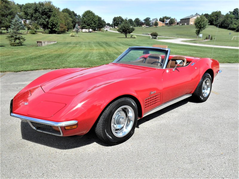 1972 Chevrolet Corvette Convertible Original Matching Numbers 350 V-8 Engine with 4 BBL Original TH-400 3-Speed Automatic Transmission Finished in Bright Red Exterior over Custom Brown Saddle Interior Tan Convertible Soft Top Factory Air Conditioned Car Equipped with Power Steering Power 4-Wheel Disc Brakes Tilt/Telescopic Steering Wheel, Delay Wipers AM/FM Radio Great Running Car Original 23,000 Miles