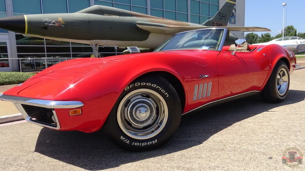 1969 Chevrolet Corvette Convertible Numbers Matching 350/300 HP V-8 Engine Automatic Transmission Red Exterior over a New Tan Leather Interior Power Steering 4 Wheel Disc Brakes Air Conditioning New Convertible Top Rally Wheels
