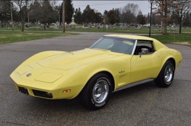 1974 Chevrolet Corvette Coupe L82 V-8 Powered Manual 4 Speed Close Ratio Transmission Yellow Exterior with Black Bucket Seat Interior Power Steering Power Brakes Removable T-Tops Rally Wheels w/Raised White Letter Tires 33,912 Miles Original Window Sticker Factory Air Condition