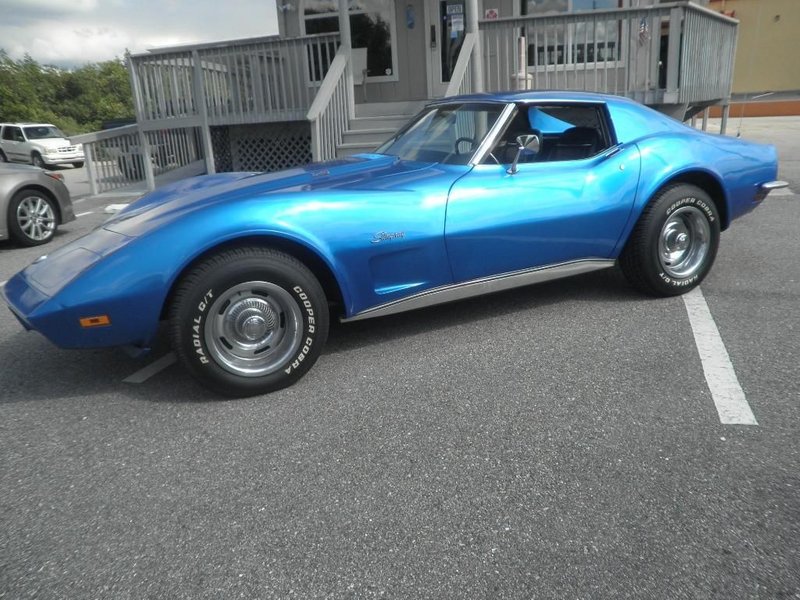1973 Chevrolet Corvette Coupe 350 V-8 Engine Automatic Transmission Blue Exterior over Black Interior Bucket Seat Interior T-Tops Cooper Cobra Radial G/T Tires