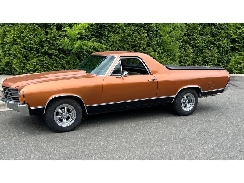 1972 Chevrolet El Camino Pickup New 350 Crate V-8 Motor with 375 HP 5-Speed Manual Transmission Copper Exterior with Black Valance over Saddle Interior Dakota Digital Dash Air Conditioning Power Disc Brakes Upgraded Suspension New Wiring Harness Crager Chrome Wheels Only 355 Miles on the Engine