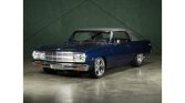 1965 Chevrolet Malibu SS Convertible Restomod 383 Stroker V-8 Engine with Quick Fuel SS750PV Carb, Herman Big Tube Headers & ATI Electronic Ignition 700R4 4-Speed Automatic Transmission Glasurit Honda Performance Blue over Black Leather Interior Gray Convertible Soft Top Engine Block Matches Car with Most Parts Polished Aluminum or Stainless Steel Wilwood Electric Assisted Power Steering & Adjustable Brakes using CPP Big Brake Components Vintage Air Heating & Air Conditioning Four-Link Rear Suspension with Viking Performance Adjustable Coil-Over Springs Bucket Seats and Console B&M Magnum Grip Street Bandit Shifter Alpine AM/FM/CD Player with Aux and Four Speakers with Amplifier Dakota Digital VHX Series Gauges UTI Shock Absorbers and Hotchkis Trailing Arms Flowmaster Exhaust Ford 9″ Rear End with Modular Center Section Custom Foose Wheels with BF Goodrich G-Force Tires Professional Build with High Quality Fabrication, Parts & Assembly