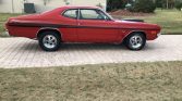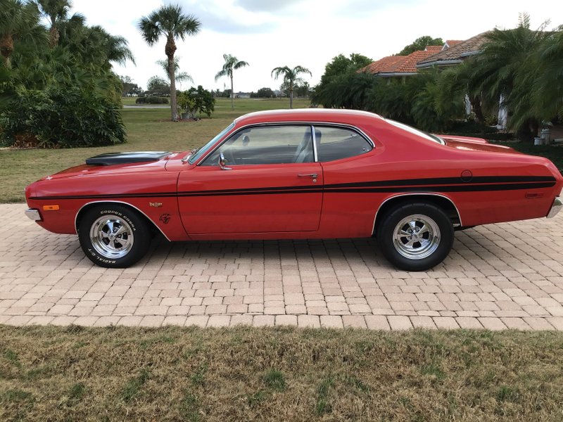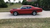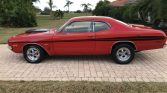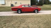1972 Dodge Dart Demon Hellcat Custom Coupe Hellcat V-8 Powered 707 HP to Rear Wheels – Real Authentic Hellcat Mopar Engine Automatic Transmission with TCI Electronic 4L80E Floor Shifter Red & Black Combination Exterior over Black Bench Seat Interior Power Steering Power Brakes Front Discs Cobalt Full Gauge Pack Audio System Tinted Windshield Professional Build at Saints & Sinners Cragar 5 Spokes with Track Slicks on the Rear