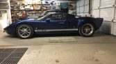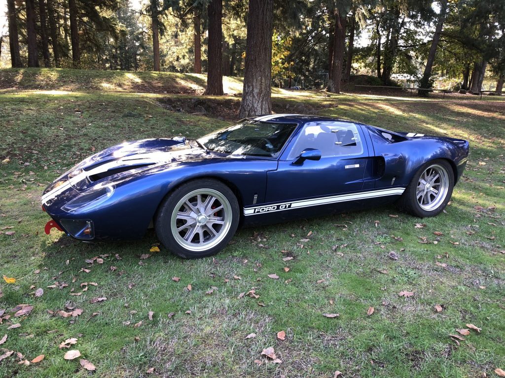 Work performed over the next three years consisted of finishing the exterior in blue with white racing stripes, fitting a black vinyl interior, and installation of a 347ci Ford V8 as well as a Porsche G50 5-speed manual transaxle. Details of the build include Mahle forged pistons, a COMP camshaft, a Holley 650 carburetor, MagnaFlow mufflers, an engine oil cooler, an aluminum radiator, AVO coilovers, front and rear sway bars, air conditioning, and more.