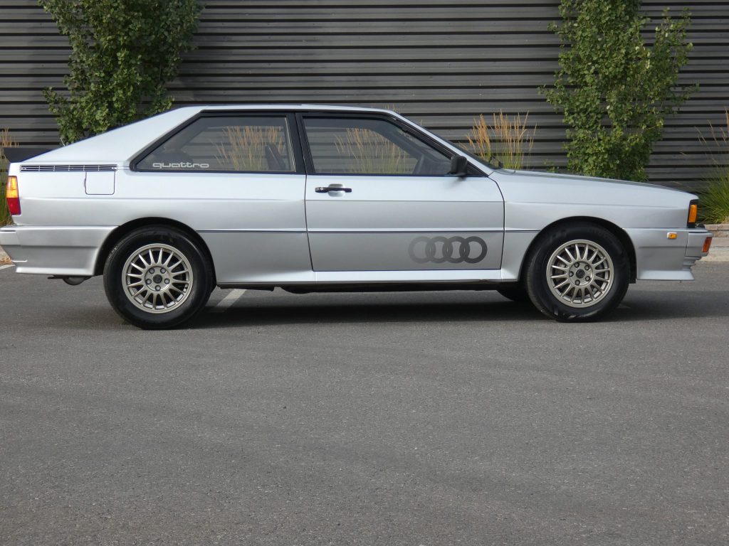 It is finished in silver over Zebra-patterned two-tone cloth, and it is powered by a turbocharged 2.1-liter inline-five paired with a five-speed manual transaxle and a Quattro all-wheel drive. Equipment includes a sunroof, 15? alloy wheels, front fog lights, and locking center and rear differentials.
