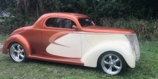 1937 Ford 3-WindowStreet Rod Coupe Corvette LT-1 Fuel-Injected V-8 700R4 Automatic Transmission with Overdrive Copper and White Exterior Downs Body and Aftermarket Chassis Mustang II Front Suspension with Tubular Arms Ford 8″ Differential 4:10 Posi Coil Overs Air Conditioning Power Steering Power Disc Brakes Power Windows Tilt Wheel Digital Dash AM/FM/CD Non-Conforming VIN Tag