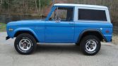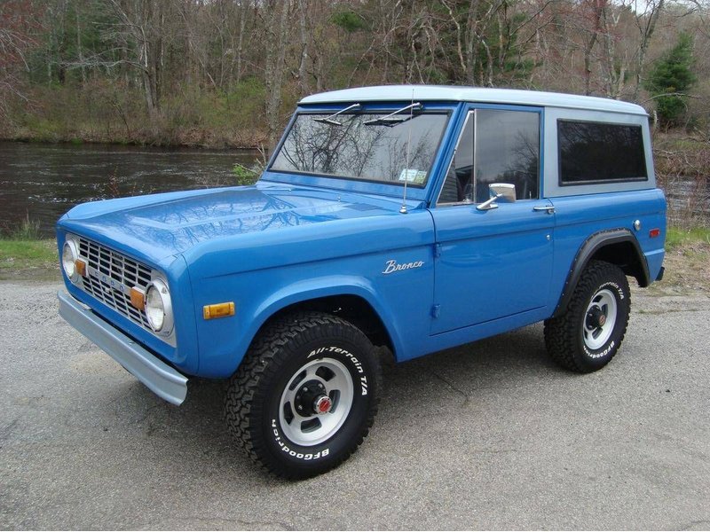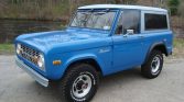 1974 Ford Bronco 4 X 4 Sport Utility Factory Original 302 V-8 Engine 3-Speed Manual Transmission Grabber Blue Exterior over Blue Interior Very Solid Top to Bottom and Stock Correct Power Brakes and Working 4-Wheel Drive Updated Headers and Dual Exhaust gives it a Deep Throaty Growl All Drivetrain has been Recently Rebuilt so it is a Proven Reliable Driver Exterior was Stripped from the Original Dark Jade Metallic to Bare Metal Finished in Iconic Ford Grabber Blue…