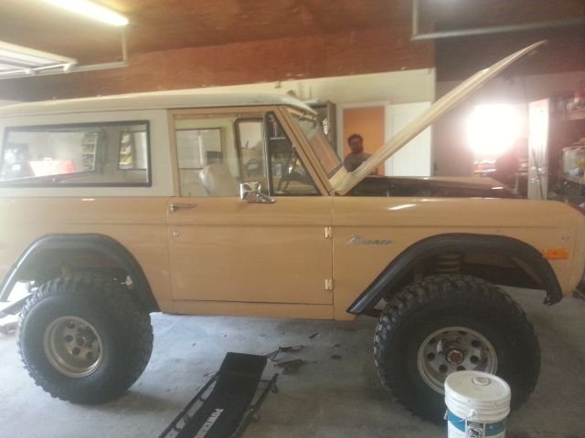 1976 Ford Bronco Sport Utility 302 V-8 Engine 3-Speed Automatic Transmission Tan Exterior with a White Steel Top over Parchment Interior Power Steering Power Disc Brakes Barn Find with Only 2 Owners 2 Inch Lift Kit Installed Upgraded New Wheels and Tires 35 X 12.5 X 15 Road Ready – Engine, Transmission, Fuel Tank and Lines, Coolant, Brakes have been serviced Rust Free Bronco is Certainly Rare to Find and More Rare is all the Equipment it has Actual Miles of 34,211 but is Sold as Exempt