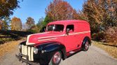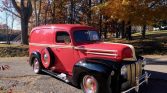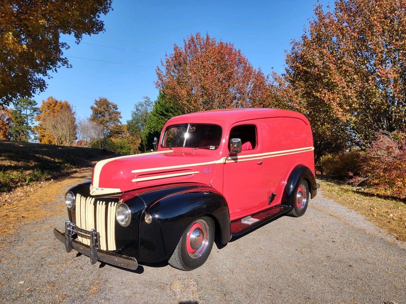 1946 Ford Custom Delivery Panel Wagon 302 CI V-8 Engine Automatic Transmission Red & Black Exterior over Red & Black Leather Interior Power Steering Tilt Column Air Conditioning Upgraded AM/FM CD Audio System Wood Trim Floors