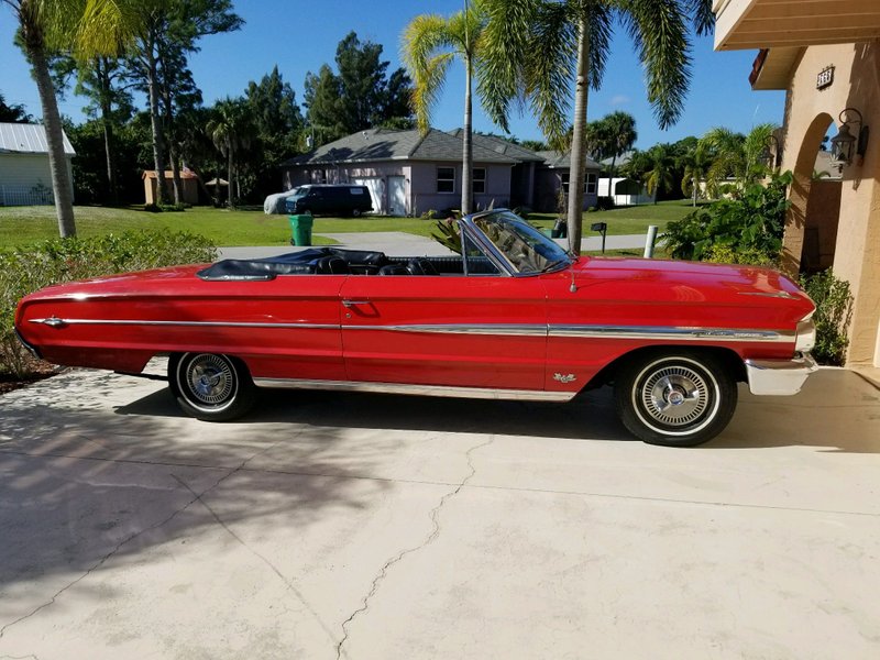 1964 Ford Galaxie 500 XL Convertible 390 V-8 Engine Automatic Transmission Red Exterior over Black Interior Black Convertible Soft Top Black Bucket Seats Same Owner over 20 Years Excellent Chrome Fender Skirts