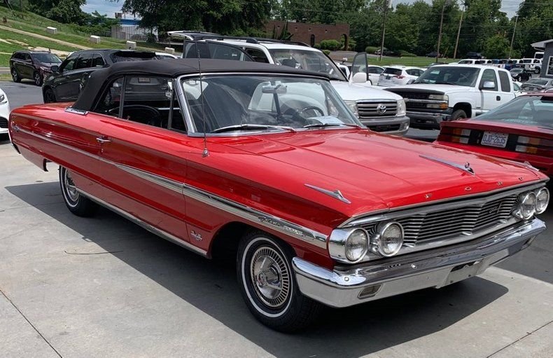1964 Ford Galaxie 500 XL Convertible 390 V-8 Engine Automatic Transmission Red Exterior over Black Interior Black Convertible Soft Top Black Bucket Seats Same Owner over 20 Years Excellent Chrome Fender Skirts