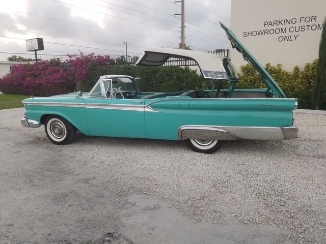 1959 Ford Skyliner Retractable 292 V-8 Engine Automatic Transmission Original Indian Turquoise Exterior Original Unrestored Radiant Turquoise w/Turquoise Striped Inserts Colonial White Top Working Retractable Top Power Steering Runs and Drives Good