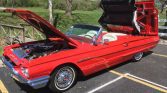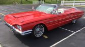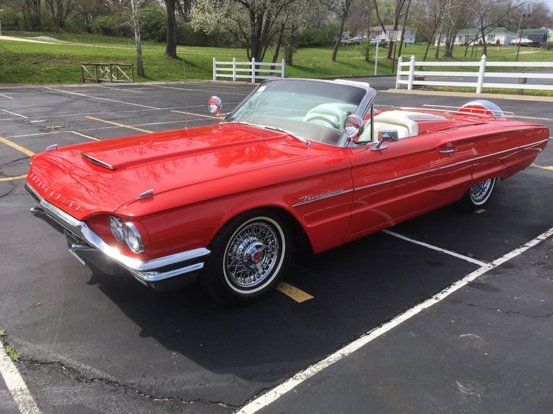 1964 Ford Thunderbird Convertible 390 V-8 Engine Automatic Transmission Red Exterior over White Interior Power White Convertible Soft Top All Factory Equipment Power Steering Power Brakes Swing Away Steering Wheel Power Windows Power Seats - Both Driver's and Passenger's Seats Fender Skirts AM/FM Radio Cruise Control Transistorized Ignition System Variable Speed Windshield Wipers Remote Control Outside Mirror Tinted Glass Tonneau Cover Continental Kit Dual Spot Lights Chrome Engine Dress Up Kit Luggage Rack Kelsey Hayes Roadster Wire Wheels…