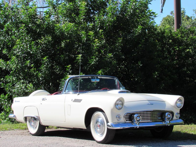 1956 Ford Thunderbird Convertible Rebuilt 312 V8 Engine Automatic Transmission White Exterior over Red & White Interior Brand New White Convertible Top White Factory Porthole Hardtop Well Documented Restoration Excellent Driver Car Upgraded 4BBL Carburetor and Air Cleaner (Original carb and air cleaner included) Continental Kit Factory Steel Wheel Covers Rear Fender Skirts