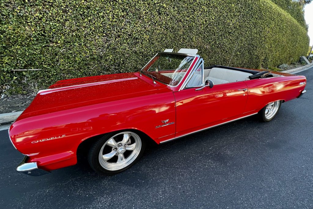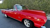 Finished in red over white vinyl and powered by a 5.7-liter LT1 V8 paired with a 4L60 four-speed automatic transmission. Equipment includes a tan power-operated soft top, 17? American Racing alloy wheels, power steering, chrome trim, a center console, air conditioning, bucket seats, and a Custom Autosound stereo.