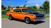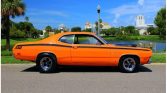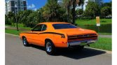 1970 Plymouth Duster Coupe 340 CI V-8 Engine Automatic Transmission Factory EK2 Vitamin C Orange w/Bold Flat Black 340 Stripe Package Exterior over Black Bench Seat Interior Flat Black Dual Snorkel Scooped Hood and Hood Pins Edelbrock Intake and Carb MSD Ignition Headers Dual Exhaust Color Keyed and Detailed Engine Bay w/Engine Dress Up Kit 8 3/4 Rear End Power Steering Power Brakes AM/FM Cassette Radio Keystone Reversed Mag Wheels Racemaster 2.5-26-15 Tires on the Front Deep Reversed…