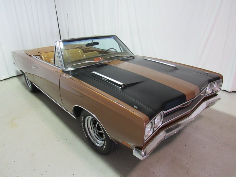 1969 Plymouth Road Runner Tribute Convertible 383 V-8 Engine Automatic Transmission Copper Exterior over Tan Interior Black Convertible Soft Top Power Convertible Top Tan Tonneau Cover Bucket Seats Magnum 500 Wheels with BFG Radial Tires