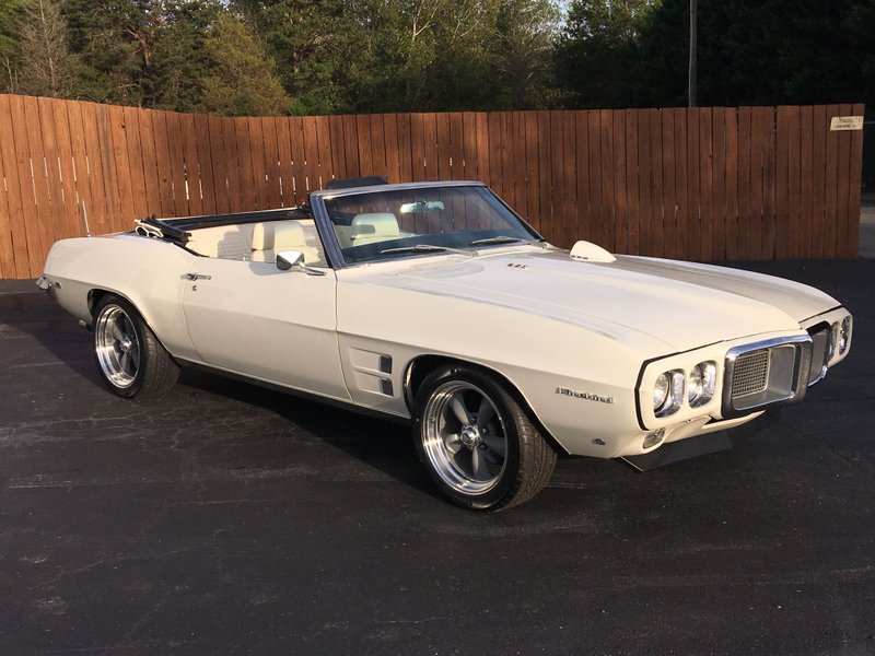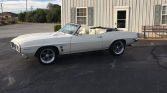 1969 Pontiac Firebird Convertible 350 V-8 Engine Automatic Transmission White Exterior over White Interior Power Convertible White Soft Top Power Steering Power Brakes Torque Thrust Wheels Hood Tachometer Wood Grain and Gauge Package