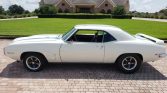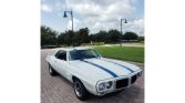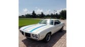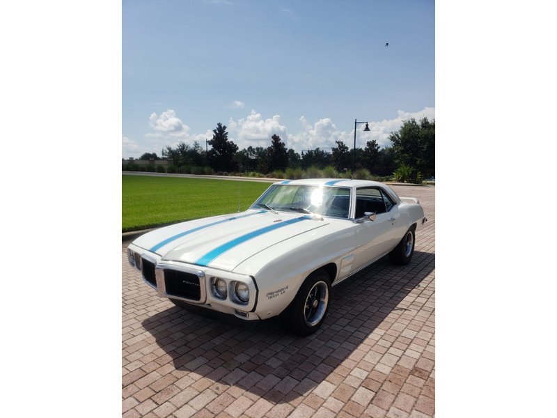 1969 Pontiac Firebird Coupe 428 V-8 Engine 500 HP Automatic Transmission White and Blue Exterior over Black Interior Triple Carburetors Power Steering Power Brakes MSD Ignition