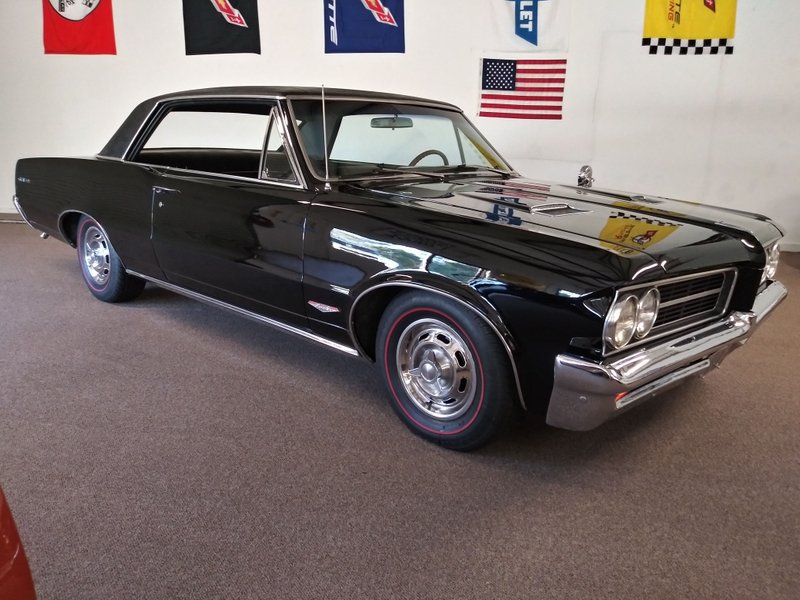 1964 Pontiac GTO Coupe 389 V-8 Engine Code 78 Block Dated May 7th, 1964 4-Speed Manual Transmission Black Exterior over Black Interior Black Vinyl Top Power Steering Power Brakes Factory Tach and Gauges Paint is Razor Straight Posi-Traction Rear End Rolling on Red Line Tires with Correct Wheel Covers Documented with all PHS Paperwork and Window Sticker