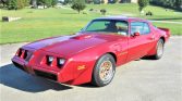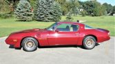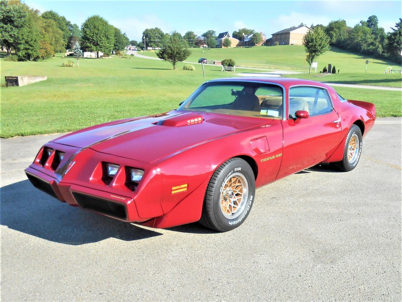 1979 Pontiac Trans Am Coupe Correct K Code Oldsmobile 403 V-8 Engine with 4-Barrel Carburetor TH350 Turbo Hydra-Matic 3-Speed Automatic Transmission with Console Shifter Deep Maroon Exterior over Tan Bucket Seat Interior – Real 2W Code Distinct 3-Spoke Leather Wrapped Steering Wheel and Aluminum Dash Original Factory Air Conditioning Car Equipped with Power Steering and Power Disc Brakes Rear Defrost Excellent Condition Gold Inset Honeycomb 15-Inch Trans Am Wheels White Letter BF Goodrich Radial T/A Tires Rear Differential is the Correct G-Code 2.41 Ration Great Running and Great Looking Trans Am