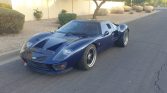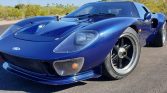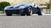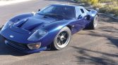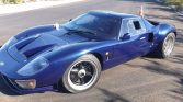 Ford GT40 converted to left-hand drive some time ago and is powered by a 347ci V8 paired with a six-speed manual transmission. It is finished in dark blue over black and red leather upholstery and features AP Racing four-wheel disc brakes, 17 center-lock wheels, a Le Mans-style fuel filler, and a plexiglass rear and side windows.